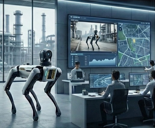 4족보행 로봇이 순찰하며 위험 발견시 영상을 전송하고 관제실에서 해당영상을 모니터링하는 통합시스템입니다.